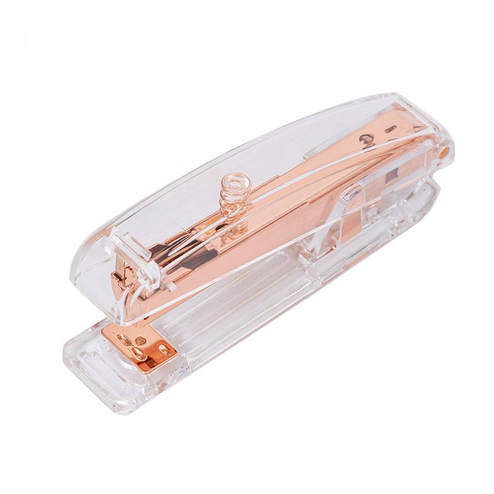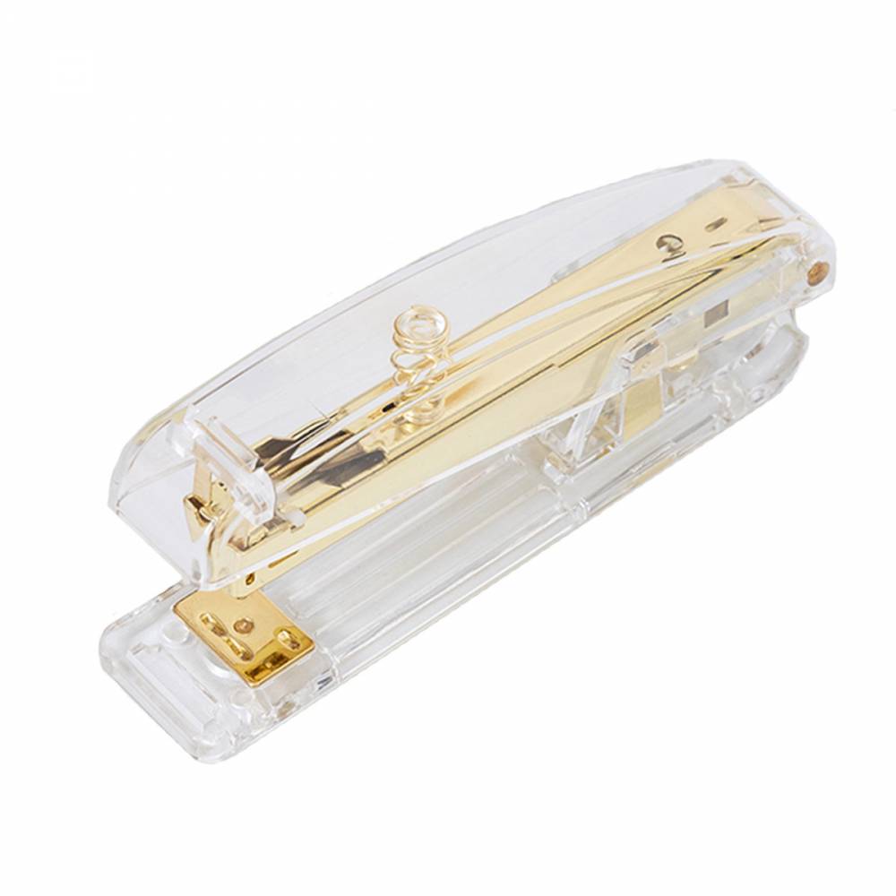 Diseño elegante, duradero y moderno. Color Oro. Se adapta a grapas estándar 24/6. Grapa fácilmente más de 15 páginas.Medidas: 15x3,5x6,5 cm Materiales: acrílico y metal.
