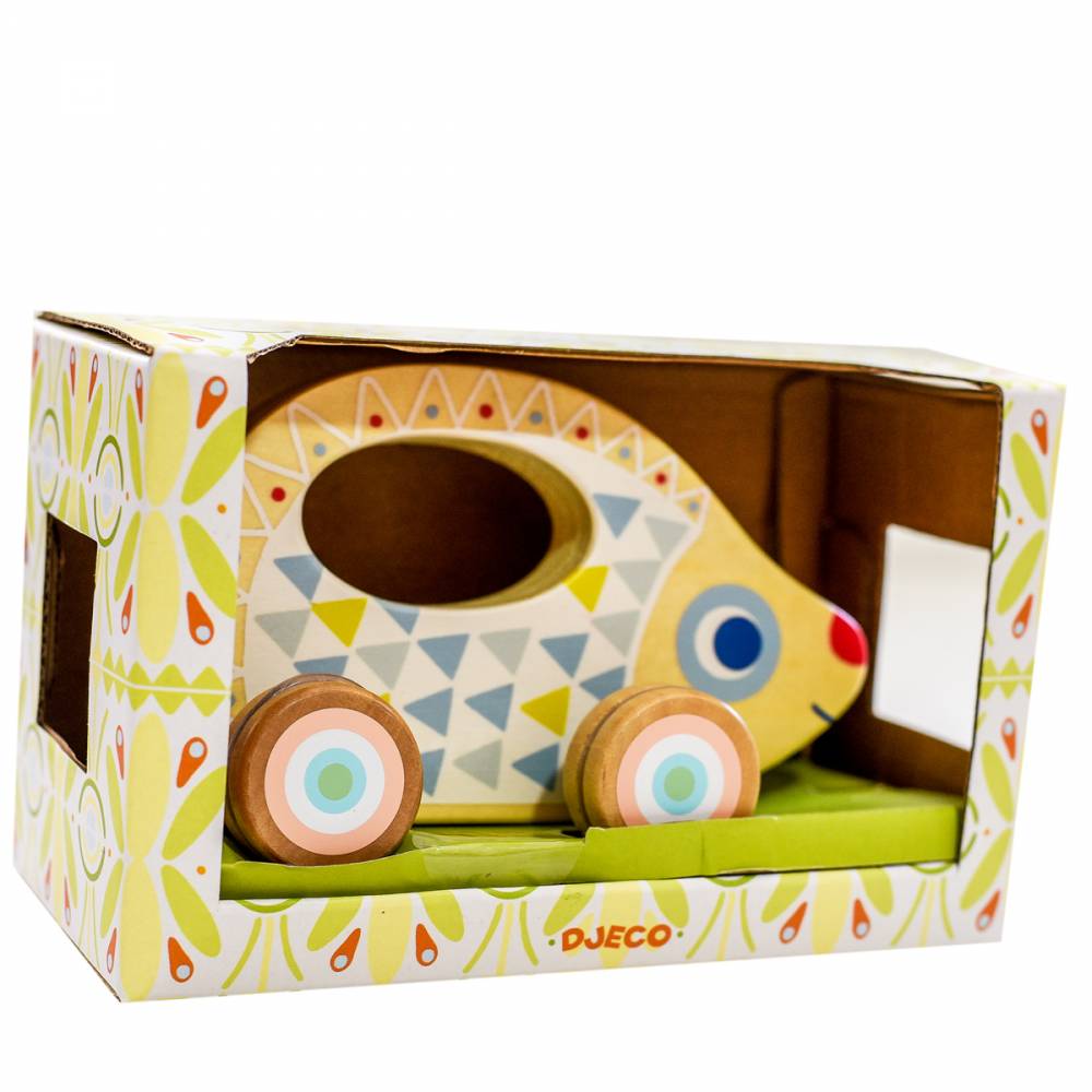 ¡Erizo con ruedas, para pasear por todo tu hogar! Perfecto para jugar en el suelo, amigable autito de arrastre con forma de erizo será uno de sus inseparables cuando comience a gatear. Las ruedas son de silicona lo que permite un rodar silencioso en las superficies planas.