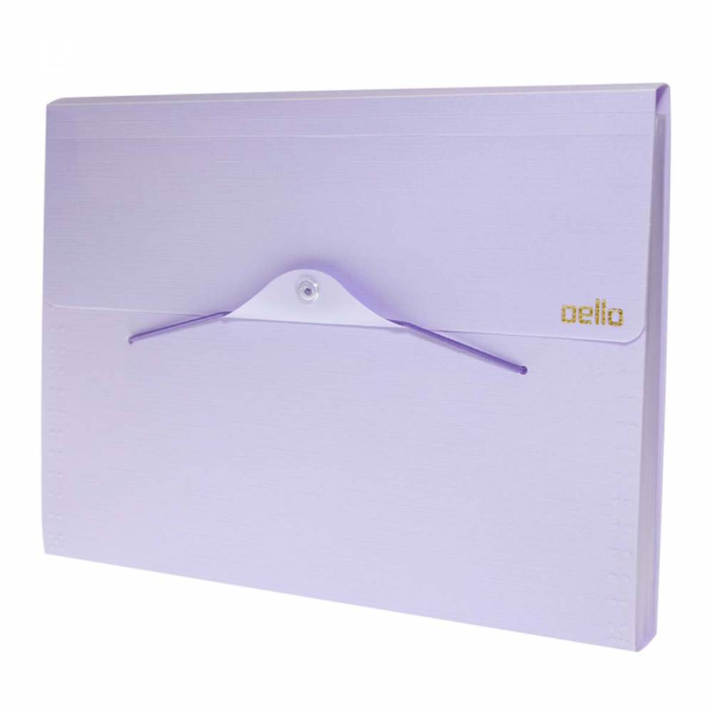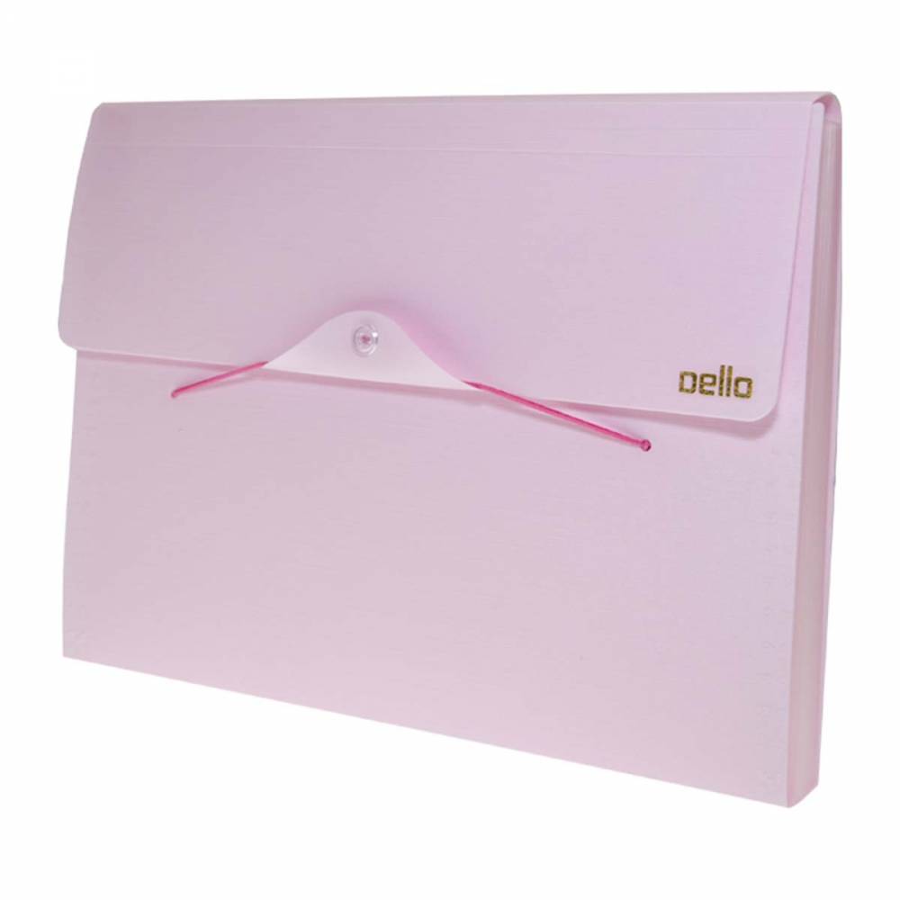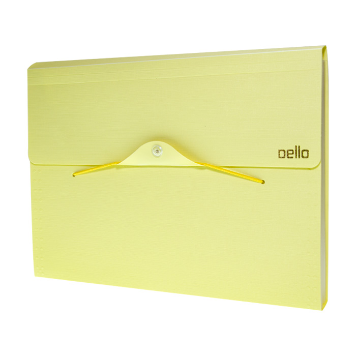 La línea de carpetas con fuelle Serena de Dello muestra como la organización y tendencia son inseparables. Fabricadas en polipropileno y disponible en 5 colores pastel (amarillo, verde, azul, rosado y lila) en tamaño A4 y con cierre elástico.