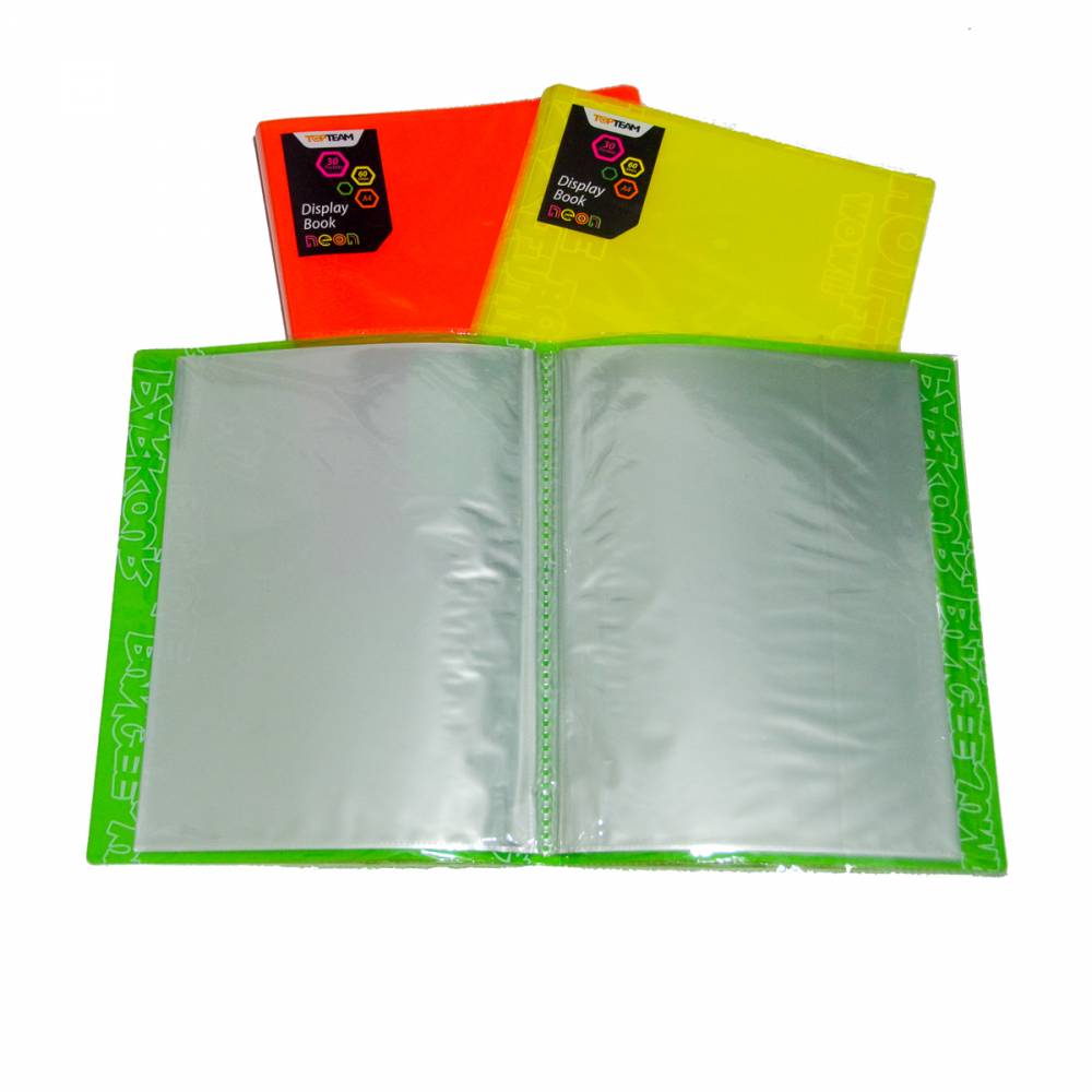 Carpeta plástica en formato A4, con 30 fundas interiores que protegen las hojas. Ideales para listas de precio o materiales de consulta permanente. Nueva línea en colores neón