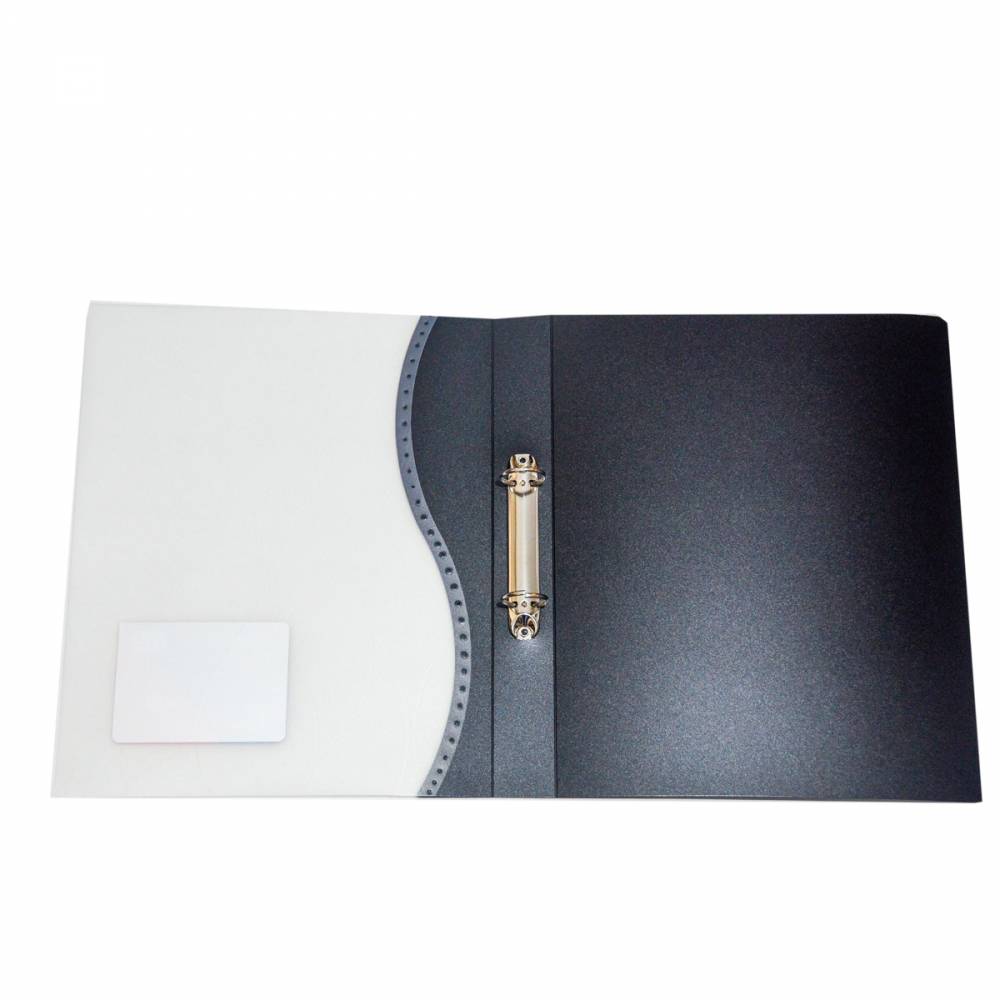 Carpeta dos anillos plastica negra, transparente.