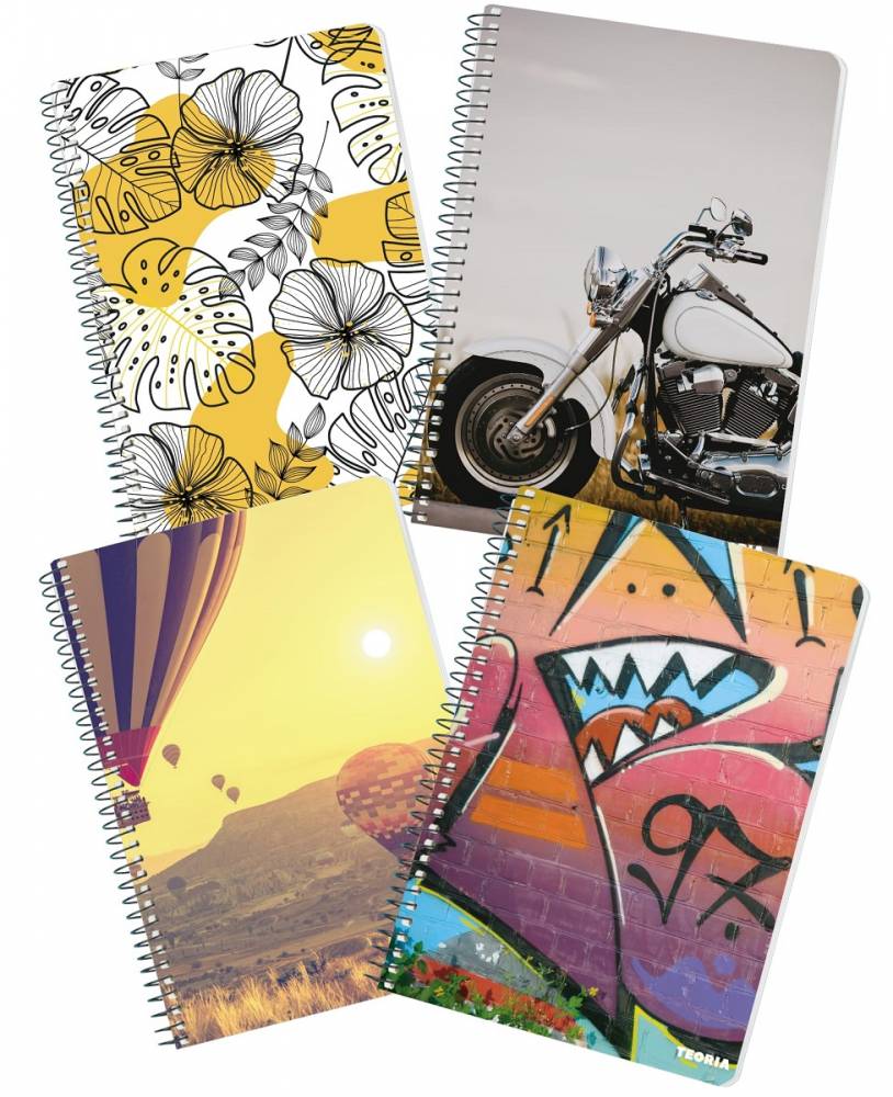 Cuadernola A4 con espiral,con tapa dura con diseños jóvenes. Contiene 100 hojas rayadas y perforadas para su fácil archivo. Ideales para la oficina y el colegio.