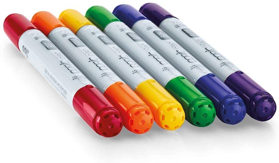 Marcadores de doble punta con tinta a base de alcohol, especialmente indicados para ilustradores, artistas y diseñadores. Su cuerpo redondo y suave permite una óptima sujeción. Su tapa que indica el color, se cierra con precisión y es ventilada para mayor seguridad. Sus dos puntas de polyester otorgan una larga vida: Punta de Pincel de un lado y Trazo Medio Biselado del otro. Óptimo poder de mezclado entre los colores para alcanzar el tono deseado, ideales para usar sobre papel, telas, madera, plásticos y otros CONSULTA POR EL COLOR QUE TU PRECISAS!!!